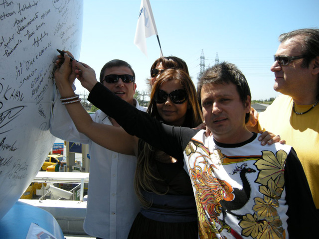 Organizasyona katılan tüm sanatçılar, Şimay'ın Euro 2008 Şampiyona'sına katılacak Türk Milli Takımı için seslendirdiği özel şarkı eşliğinde, 4 Metrelik 'İyi Dilek Topu'nu imzalayarak başarılar dilediler.