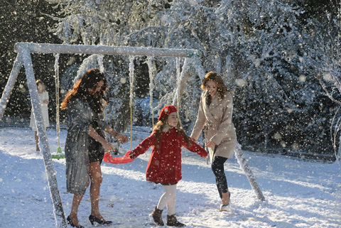 Özel olarak, yapay kar makinası tarafından yağdırılan kar, her yeri beyaz örtüye bürürken, dizinin oyuncuları ise, fırsattan istifade ederek yağan karı eğlenceye dönüştürdü. Yağan karın keyfini çıkartıp doyasıya eğlenen Dilşad Çelebi, Filiz Taçbaş ve Zeynep Özder kamera önüne geçecekleri rol arkadaşları olan minik oyuncu Leya Kırşan’la karlı havanın tadını çıkarıp, doyasıya eğlendiler.
