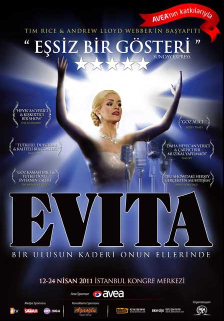 Bill Kenwright prodüksiyonu ile Avrupa turneleri kapsamında İsviçre, Avusturya ve Almanya'da sahnelenen EVİTA Müzikali, Avea'nın desteğiyle 12-24 Nisan tarihleri arasında İstanbul Kongre Merkezi'nde sahnelenecek.