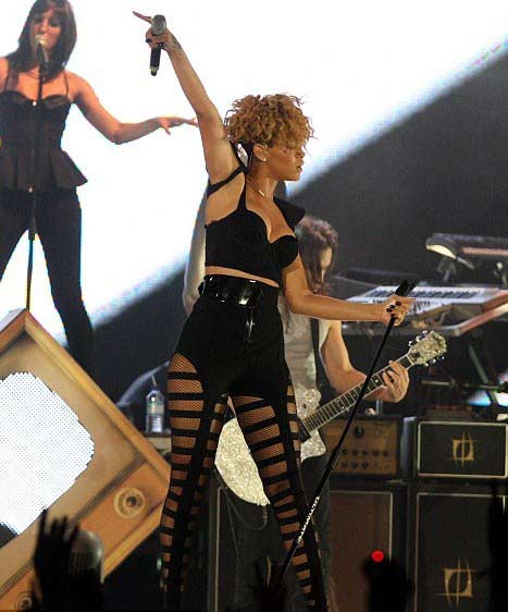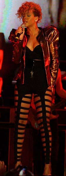 Rihanna ,Abu-Dabi konserine göğüs dekoltesi olan,beli açıkbir siyah bustiyer ve şort ile çok seksi çoraplarla adeta yarı çıplak sahneye çıktı...
