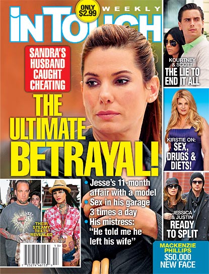 Amerikan dergisi INTOUCH WEEKLY'in kapaktan verdiği habere göre Sandra Bullock'u Oscar kazandığı ''The Blind Side''filmini setine gönderen kocası Jesse James ,dövmeli sevgilisi Michelle McGree'in yatağına giriyordu...