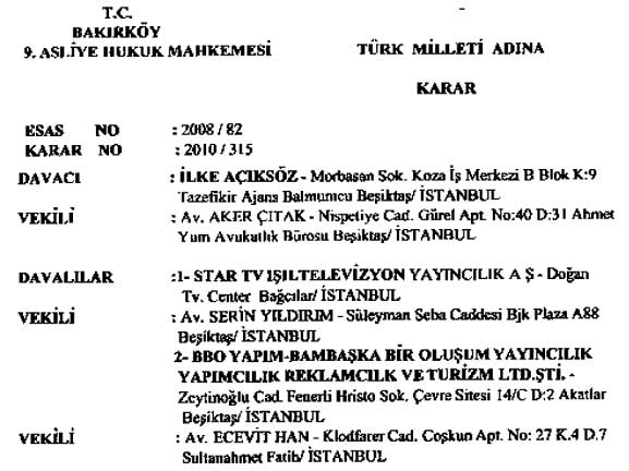 Fox TV'de 2007 yılında yayınlanan "Ahmet Çakar'la Şansa Bak" yarışmasından 75 bin TL kazanan Cengiz Yıldız ile yine aynı yıl içerisinde Star TV'de yayınlanan Şoray Uzun'un sunuculuğunu yaptığı "Benim Param Senin Paran" yarışmasından 51 bin TL kazanan İlke Açıkgöz isimli yarışmacılar, paralarını alamadıkları için dava yoluna gitti. Mahkeme heyetine "yarışmalardan para ödülü almaya hak kazandıkları halde paralarının ödenmediğini ve ödememek için televizyon kanallarının çeşitli bahaneler ürettiğini" anlatan yarışmacılar, dava sonucunda paralarını faiziyle almaya hak kazandı.
