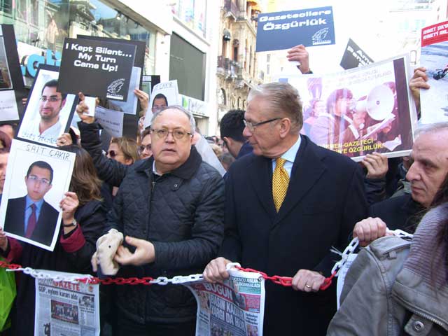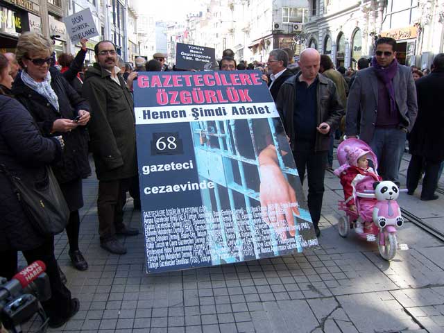 26'sı ulusal düzeyde, 66'sı yerel düzeyde 92 meslek örgütünün oluşturduğu Gazetecilere Özgürlük Platformu'nun, 13 Mart 2011 tarihinde Taksim'de protesto etkinliği düzenledi.