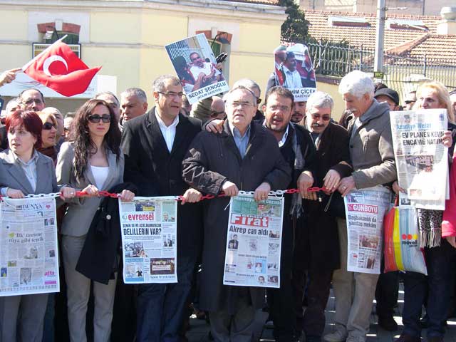 Gizli ve yasa dışı telefon dinlemeleriyle, ağır ithamlar içeren suçlamalarla, hukuka aykırı arama ve delil toplama faaliyetleriyle, infaza dönüştürülen tutuklamalarla, yargılama sürerken kamuoyu gözünde itibarsızlaştırma niyetiyle yapılan bilgi kirliliğiyle yaratılan korku ortamında ne basın özgürlüğü kalır, ne de halkın gerçekleri öğrenme hakkı!