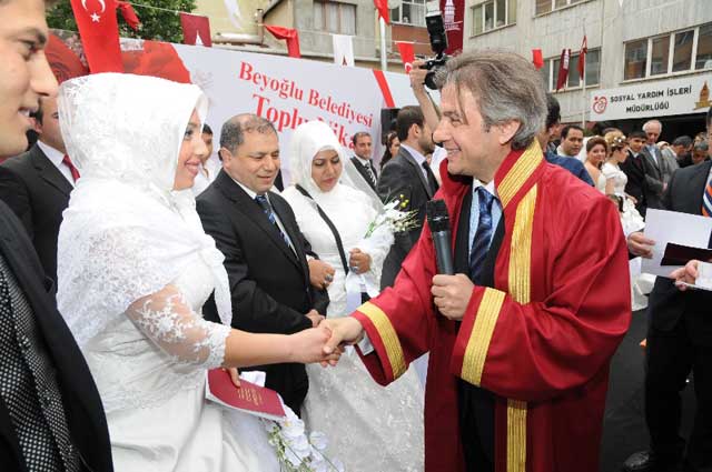 Beyoğlu'nda yaşayan ve resmi nikahı olmayan 60 çiftin tüm masrafları Beyoğlu Belediyesi tarafından karşılandı. Gelinlikler ve damatlıklar alındı, nikah şekerleri hazırlandı, eşi dostu davet etmek için davetiyeler basıldı, şölen havasında geçecek nikah töreni için Kasımpaşa Kızılay Meydanı süslendi. Çiftler Beyoğlu Belediyesi Semt Konakları'nda düğüne hazırlandı. Nikah saati geldiğinde çiftler alkışlar eşliğinde Kızılay Meydanı'na kurulan platforma gel gelinler ve damatlar oldukça heyecanlıydı.