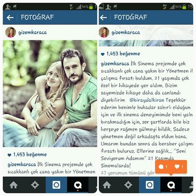 `Seni Seviyorum Adamım` filmiyle sinema da ilk başrolünü oynayan ünlü oyuncu Gizem Karaca, filmin başarılı yönetmeni Biray Dalkıran?a instagram üzerinden övgü dolu sözler söyledi.