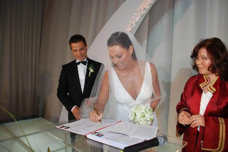 Yaş farkları nedeniyle çok konuşulan iki sevgili dün akşam Maslak Refresh Venue'de yapılan nikah töreni ile dünyaevine girdi. Çiftin nikah şahitliğini ise 10 kişilik arkadaş grubu yaptı. Pınar Altuğ'un şahitleri, Zeynep Deldağ, Melisa Basut, Yael Debayar, İzak Bilmen, Rahşan Anter; Yağmur Atacan'ınkiler ise Cihan Yenici, Cihan Uzunhekim, Erman Pakman, Baran Öneren ve Alper Çağrı Önal'dı. Altuğ, Perihan Akı tarafından yapılmış bir gelinlik giymişti. Atacan'ın damatlığı Ermenegildo Zegna markaydı. Yaklaşık 400 konuğun katıldığı nikah ve düğün töreni öncesi, gelin ve damat basın mensuplarının karşısına çıktı. Çift, düğün sonrası Paris'te 5 günlük kısa bir balayı yapacaklarını açıkladı. Törene babasının katılmaması hakkında Yağmur Atacan 'Babam işlerinden dolayı gelemedi. Ben de kendisini zorlamadım. Sık boğaz etmek istemedim' dedi. Hayalindeki düğün için uzun süredir uğraştıklarını söyleyen Pınar Altuğ, 'Her şey hayalimdeki gibi olsun diye uğraştım. Bugün ikimizinde karnı ağrıyor. Çok heyecanlıyım. Yağmur'un soyadını ve onun çocuğunu taşıyacağım için çok mutluyum' diye konuştu.