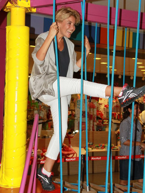 İstanbul`daki bir alışveriş merkezinin özel çocuk katında oğullarıyla birlikte eğlenen Ergen, onları atlara bindirdi, tırmanma duvarında sözleriyle destek verdi ve en son Cambazda dayanamayıp kendisi de oyunun içine girdi.