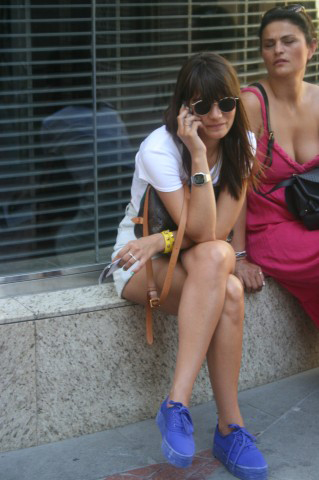 Arabasını beklerken, alışveriş merkezinin dışında kaldırıma oturan Aslan, kot şortu,mavi ayakkabılarıyla sokakta dilenen liseli bir kız edasındaydı.