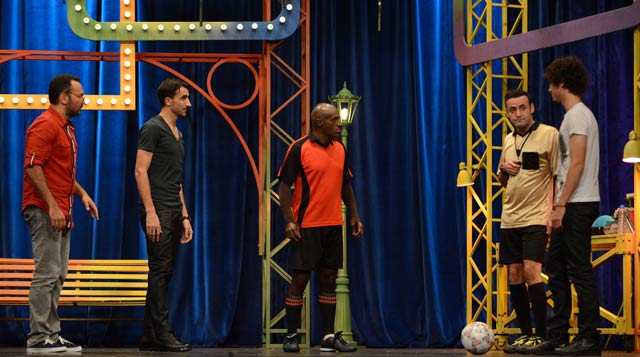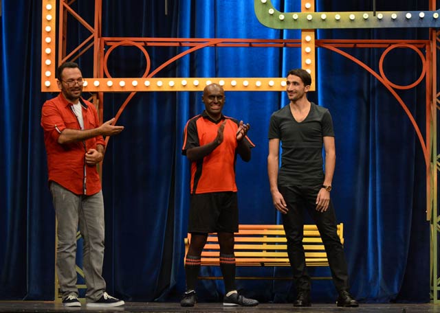Alper Kul'un zenci bir futbolcuyu canlandırdığı skeçte oyunculara taktik veren başarılı futbolcular seyircilerden büyük alkış aldı.