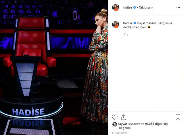 Hadise, O Ses Türkiye setinde boş juri koltuğuna bakarken çekilmiş bir resim karesine; ‘Hayal mahsulü sevgilimle dertleşirken ben!’ notunu düştü.