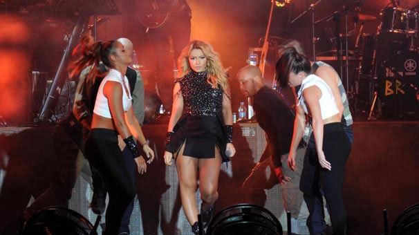 Antalya`da konser veren Hadise, dans gösterileri sırasında, vantilatörler nedeniyle sık sık havalanan eteği nedeniyle zorlandı.