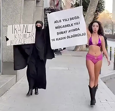 Bikinili protestolarıyla tanınan Melisa Aydınalp ,kadın cinayetlerine ve kadın haklarına dikkat çekmek için sık sık tek kişilik yürüyüş protestoları yapıyordu.