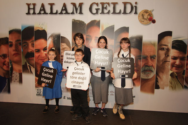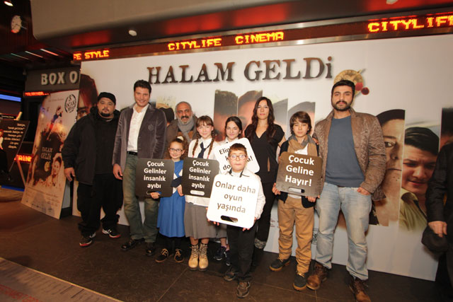 Türkiye?nin en büyük problemlerinden birini, çocuk yaşta gelin olan kızların acı dramını ve akraba evliliklerini ele alan ?Halam Geldi?nin özel gösterimine, filmin oyuncuları tarafından yapılan ?Çocuk Gelinlere Hayır? Eylemi damgasini vurdu.