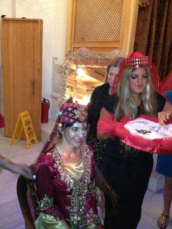 Geleneklere uygun olarak yapılan kına gecesinde Hande Ataizi, yöresel kına kıyafeti bindallı giydi. Damat adayı Benjamin Harvey'de kına gecesi boyunca hamamın kapısında bekledi.