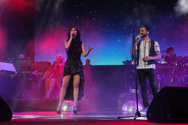 Hande Yener konser sonunda konserin sanat yönetmenliğini yapan Hakan Akkaya'yı sahneye davet ederek teşekkür etti.