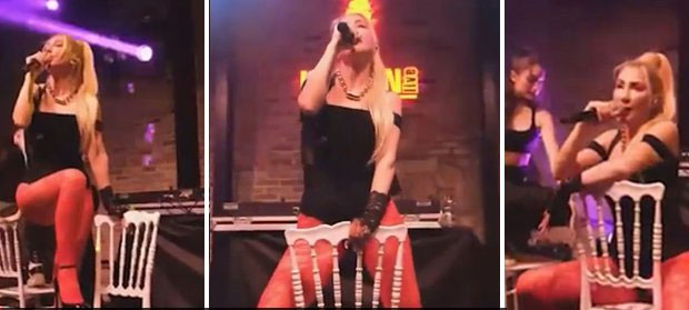 Siyah mayosunu kırmızı külotlu çorapla kombinleyen şarkıcı, dansçılarıyla yaptığı şovla tüm dikkatleri üzerine çekti.