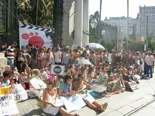 Taksim'de Galatasaray Lisesi önünde gerçekleşen oturma eylemine az sayıda tanıdık isim katılırken halkın desteği oldukça fazlaydı.