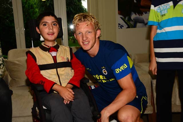 Fatih, en sevdiği üç futbolcu olan Kuyt, Sow ve Mehmet Topal'ı görünce sevince boğuldu.
