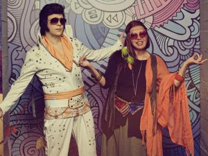 Seyyal Taner hippi kılığına girdi, Burak Kut Elvis Presley oldu! Seyyal Taner ve Burak Kut, `70?ler` konseptiyle hippi ve Elvis Presley kılığında Mehmet Turgut`a poz verdiler.