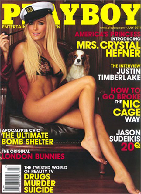 Ancak Playboy'un Temmuz sayısı baskıya verildiği için dergi yöneticileri şaşkınlık içinde kaldı...Düğünü kapak yapan Playboy yöneticileri Crystal Hefner'e elinde piposu,kucağında köpeği ve denizci şapkasıyla Hugh Hefner'i çağrıştıran çıplak poz verdiriken başlığa da'' Bayan Crystal Hefner'' diye manşet attılar...