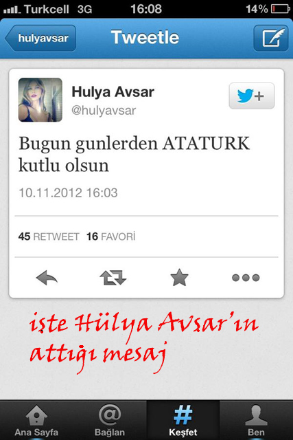 Hülya Avşar Twitterdaki sayfasında 10 Kasım Atatürk'ü anmak için öyle bir twit attı ki? Bu twite başta Erol Köse ve Tuğba Ekinci olmak üzere binlerce kınama mesajı atıldı?