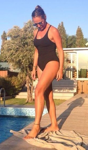 2 kilo daha veren güzel yıldız fotoğrafın yanına "Su bana bakıyor, ben suya bakıyorum. 40 dk yüzmem lazım, ne yapayım sizce " notu düştü.
