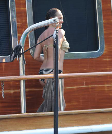 Mavi yolculuk esnasında tekneden denize girerken bikinisiyle sere serpe poz veren Hülya Avşar, bir hafta sonra Bodrum`da denize havluyla girdi, duşunu bile havluya sarılarak aldı.