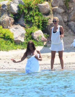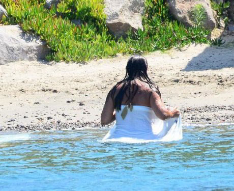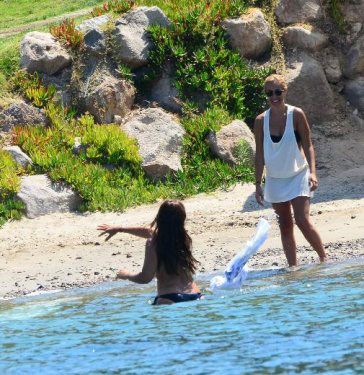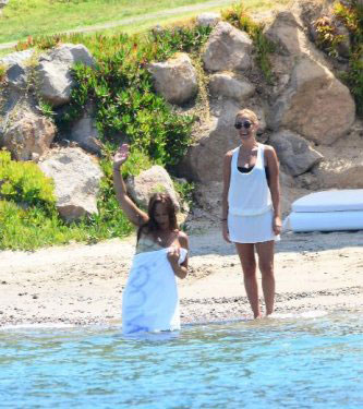 Tamamen suya girdikten sonra havluyu kardeşine veren Hülya Avşar, bir süre yüzdü, ardından garsonun denize attığı havluya sarınıp kıyıya çıktı.