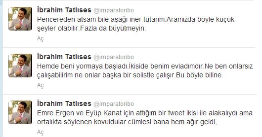 İbrahim Tatlıses bir süre önce twitter sayfasından Eyüp Kanat ve basın danışmanı Emre Ergen ile yollarını ayırdığını açıklamıştı.