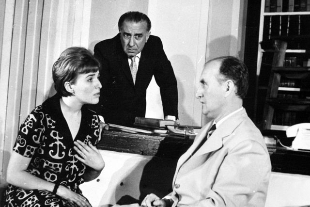 Refik Kordağ'ın yazdığı, Vasfi Rıza Zobu'nun 1963-64 Sezonu'nda sahneye koyduğu "Tepeden İnme" adlı oyunda İhsan Devrim, kızı Ayşegül Devrim ve Vasfi Rıza Zobu?