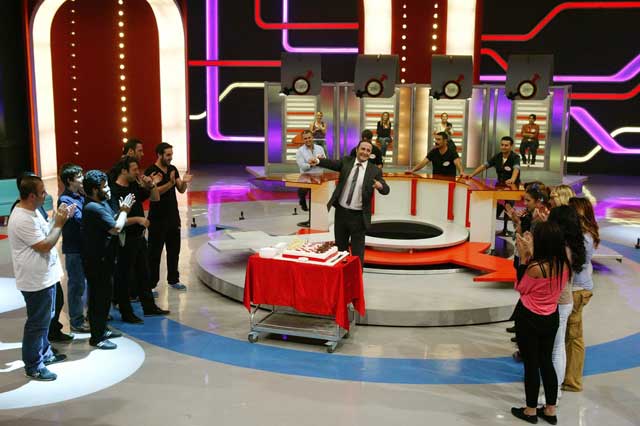 Program çekimleri sırasında yeni oyunu anons eden sempatik sunucu, bir anda karşısında doğum günü pastasını görünce büyük bir şaşkınlık yaşadı. Maytaplar eşliğinde gelen pastayı gören İlker Ayrık duygusal anlar yaşadı.
