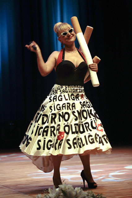 Artık podyuma çıkmayan ancak Türkiye Sigarayla Savaş Deneği üyelerinden olan ünlü manken Tuğba Özay, derneğe verdiği desteği ve sigarayla savaşanların temsilcisi olarak podyumda muhteşem bir sultan kıyafetiyle boy gösterdi.