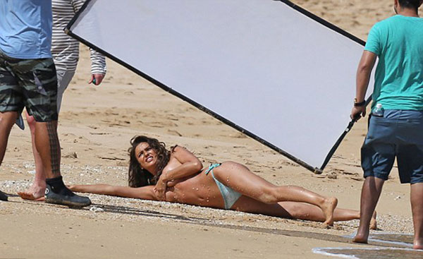 Çekimler sırasında son derece profesyonel tavırları ile dikkat çeken İrina Shayk devamlı olarak üzerini parlatıcı ve bronzlaştırıcı krem sürmesi dikkatlerden kaçmadı.4