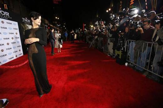 Kırmızı halıya bir adım attı, bütün bakışlar ona kilitlendi.. Azzaro'nun İlkbahar 2014 koleksiyonundan seçilen bu elbise neredeyse görkemli Thor filminden daha çok konuşuldu.