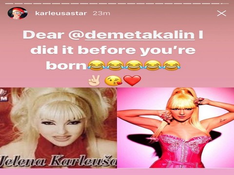 Jelena 90'lı yıllarda çıkardığı albümün kapağını göstererek, "Ben bu modeli sen daha doğmadan yapmıştım" diyerek Demet Akalın'a göndermede bulundu.