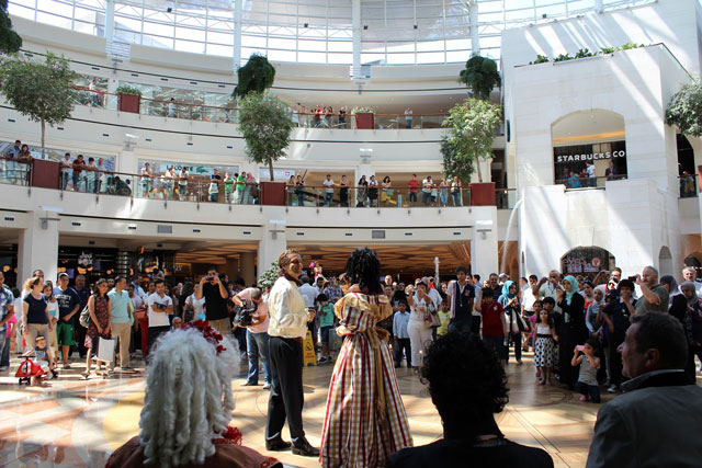 En Güzel Alışveriş Sanat Alışverişidir' sloganıyla yola çıkılan; Kamelyalı Kadın oyuncuları müzikalin kostümleri içinde izleyenleri selamlayarak, müzikalin sevilen şarkılarından söylediler
