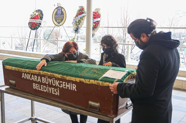 Törende ayakta durmakta güçlük çeken anne Zeliha ile kardeşleri Betül ve Erinç Çantay, tabuta sarılarak gözyaşı döktü.
