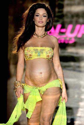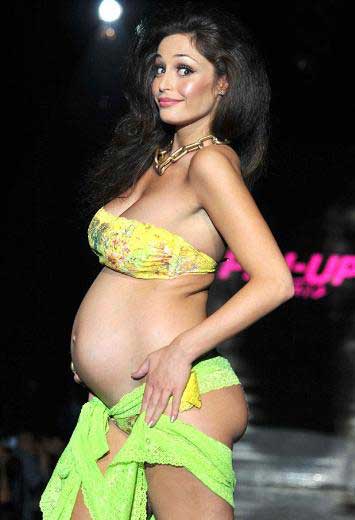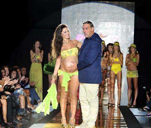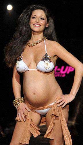 Pin up Stars adlı firmanın yeni sezon bikinilerinin tanıtıldığı defilede altı aylık hamile manken Raffaealla Fico da karnı burnunda bir halde podyuma çıktı.
