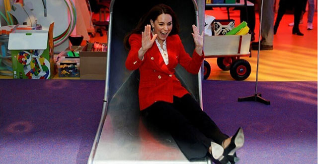 Middleton, sohbet sonrası tüplü bir kaydıraktan kayarak çocuklar gibi eğlendi.