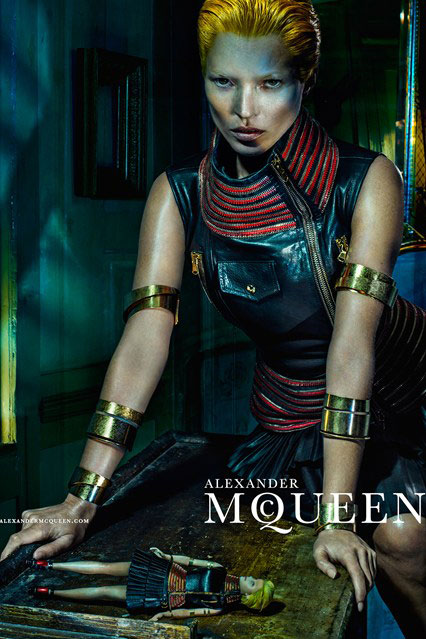 Marka için 2014 İlkbahar/Yaz kreasyonunda kendisinin aynısı bir oyuncak bebekle poz veren Kate Moss fotoğraf çekiminde saçları ve makyajı yapıldıktan sonra oyuncu Tilda Swinton'a benzerliği ile herkesi şaşırttı.