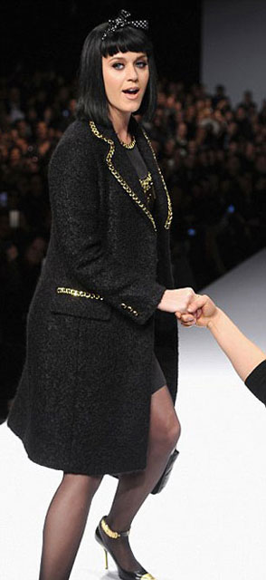 Ünlü şarkıcı Katy Perry siyah saten bir elbise ve ceket ile sahnede boy gösterirken Rita Ora ise siyah ve altın rengi ağırlıklı uzun ve bol bir tişört ile podyumda hünerlerini sergiledi.
