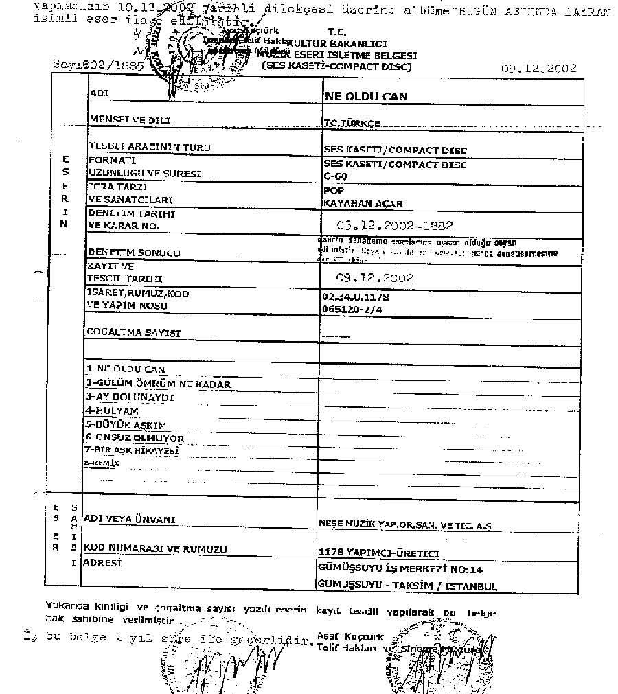 Avrupa Müzik'in ortağı Deniz Erdem ise, "Kayahan, elinde hiçbir hukuki dayanağı olmayan, birkaç kelimesi değiştirilmiş usulsüz belgelerle, usullü olan bir hakkı geri almaya çalışıyor. Eğer elindeki belgeler onu albümlerin sahibi yapıyorsa, neden halen eski eser işletme belgeleri bakanlıkta duruyor ve neden satıldı?" dedi.