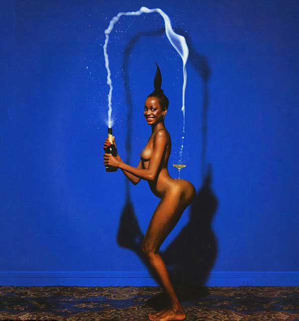 Goude?nin yıllar önce çektiği ?Champagne Incident? (Şampanya hadisesi) fotoğrafı 34 yaşındaki Kardashian ile yeniden canlandırıldı.