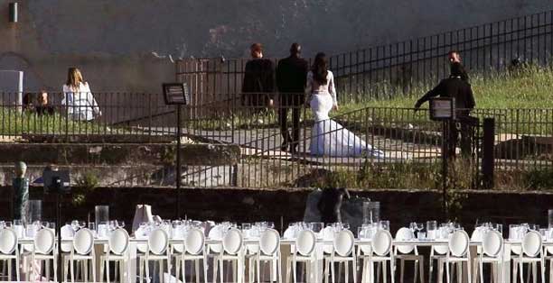 Çiftin 300 bin euro'ya kiraladığı kentin ünlü mekanlarından Boboli bahçelerinin hemen yanındaki 16. yüzyıldan kalma Forte Belvedere'de akşam yapılan masalsı düğünle Ermeni asıllı ABD'li televizyon yıldızı Kardashian, hayatını 2 senedir beraber olduğu ünlü rap şarkıcısı 36 yaşındaki West ile birleştirdi.