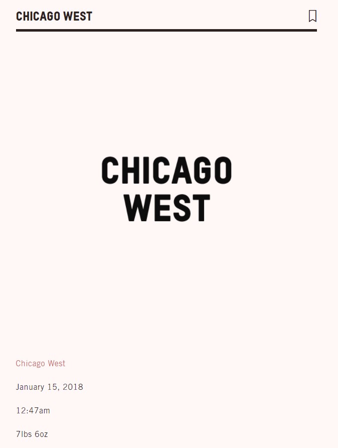 Taşıyıcı anneden dünyaya gelen bebeğe, rapçi babası Kanye West’in doğup büyüdüğü şehir olan “Chicago” ismi verildi.