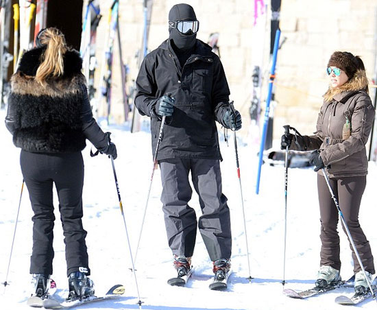 Objektiflere takılan ünlü aile görünmez adam kıyafetine bürünen Kanye West önderliğinde başta biraz pratik yaptılar daha sonra kaymaya başladılar.
