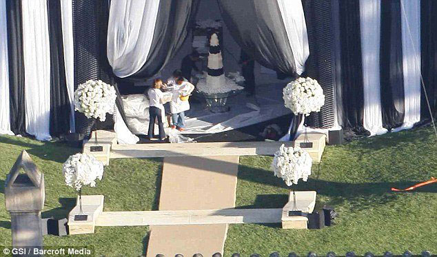 California Eyaleti'ne bağlı Santa Barbara yakınlarındaki Montecito Kasabası'nda bulunan bir malikânede gerçekleşen düğüne, sinema ve müzik dünyasından birçok ünlü isim katıldı. Wera Wang imzalı bir gelinlik giyen Kardashian, davetlilerden siyah ve beyaz renklerden oluşan kıyafet giymelerini istemişti.