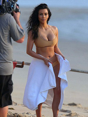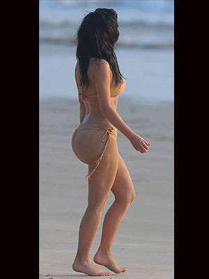 Son dönemde kalçalarına dolgu yaptırdığı iddia edilen Kardashian, ten rengi brezilya kesimi bikinisiyle bu söylentileri de çürütmüş oldu.