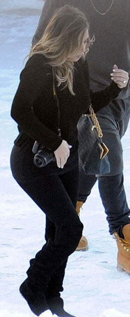 Kardashian'ın likra ve spor ayakkabısı giydiği ve ince topuklu ayakkabı taşıdığı görüldü.